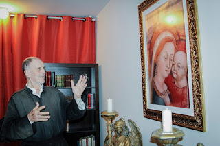 Na circunstância, os membros falaram sobre alguns do inúmeros livros presentes na sala (frutos também das doações de tantas almas generosas que se propõem a ajudar essa obra de Deus), e inclusive a respeito das motivações que nos levaram à aquisição da mesma, como, por exemplo, nossos Grupos de Estudos e o projeto de Incentivo à Leitura Devota. Fora ainda apresentado ao jesuíta o brasão da SSVM e seus ricos significados, explicitados pelo sr. Paulo Vinícius.
